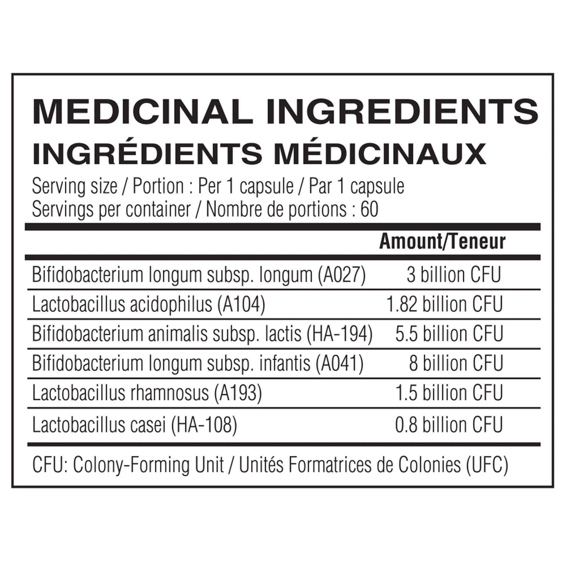 - Ingrédients médicinaux : Mélange de probiotiques avec 20 milliards de CFU (unités formant colonie) pour soutenir la flore intestinale et la digestion.