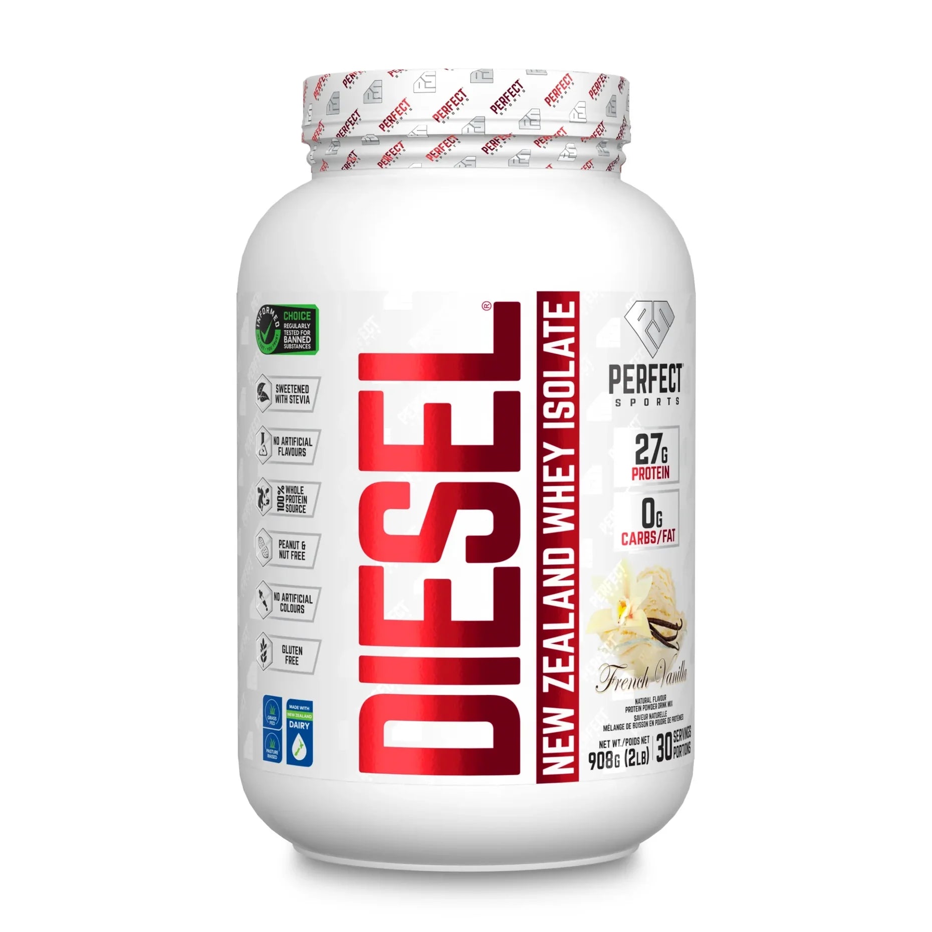 L'isolat de protéines de lactosérum DIESEL de Nouvelle-Zélande est un délicieux shake protéiné de qualité supérieure qui contient 27 g* de protéines pures par portion, dérivées de lait de vaches nourries à l'herbe et élevées au pâturage en Nouvelle-Zélande. Édulcoré naturellement avec de la stévia et exempt d'ingrédients artificiels, il offre une façon sans culpabilité et gourmande de profiter d'une variété de saveurs alléchantes tout en alimentant votre corps avec une nutrition de haute qualité. La formule DIESEL assure une digestion facile, ce qui en fait le choix idéal pour les personnes soucieuses de leur santé qui recherchent un apport en protéines propre et savoureux. * Toutes les saveurs de chocolat contiennent 26 g de protéines.