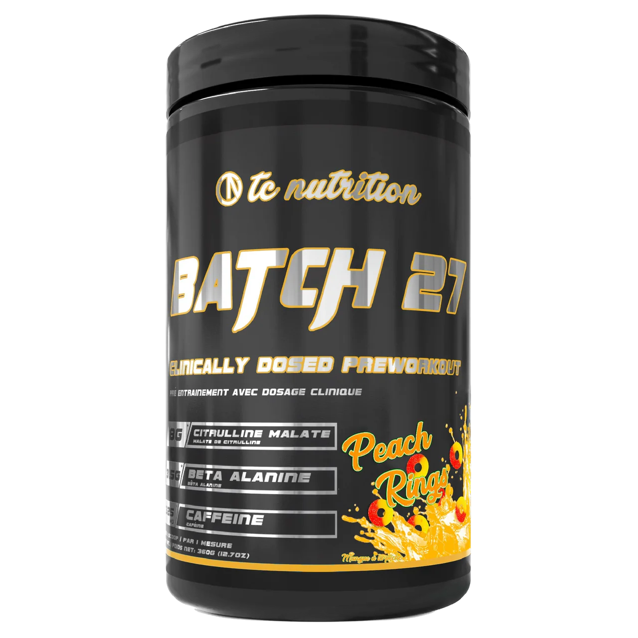 Plongez dans l'expérience ultime de l'entraînement avec Batch 27, le pré-entraînement haut de gamme de TC Nutrition. Formulé avec soin pour les athlètes sérieux, Batch 27 offre une combinaison précise d'ingrédients de qualité supérieure, chacun sélectionné pour son rôle dans l'optimisation des performances et de la concentration.
